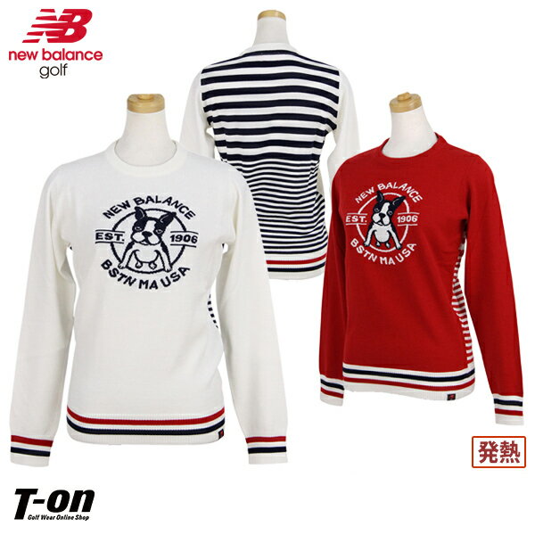 ニューバランス ゴルフ new balance golf レディース セーター クルーネック 丸首 吸湿 発熱 天竺×配色ボーダー ボストンテリアジャガード ボーダー柄切り替え 【送料無料】 2019 秋冬 新作 ゴルフウェア Singles' Day