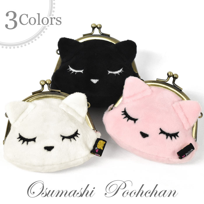 フェイクファー ぬいぐるみ プーちゃん がま口 ミニ ポーチ /レディース ミニポーチ 小銭入れ 小物入れ ミニ財布 口金 おしゃれ オシャレ ファー 耳付き 猫グッズ 白猫 黒猫 猫 ねこ ネコ 雑貨 小物 プレゼント キャラクター おすましプーちゃん r